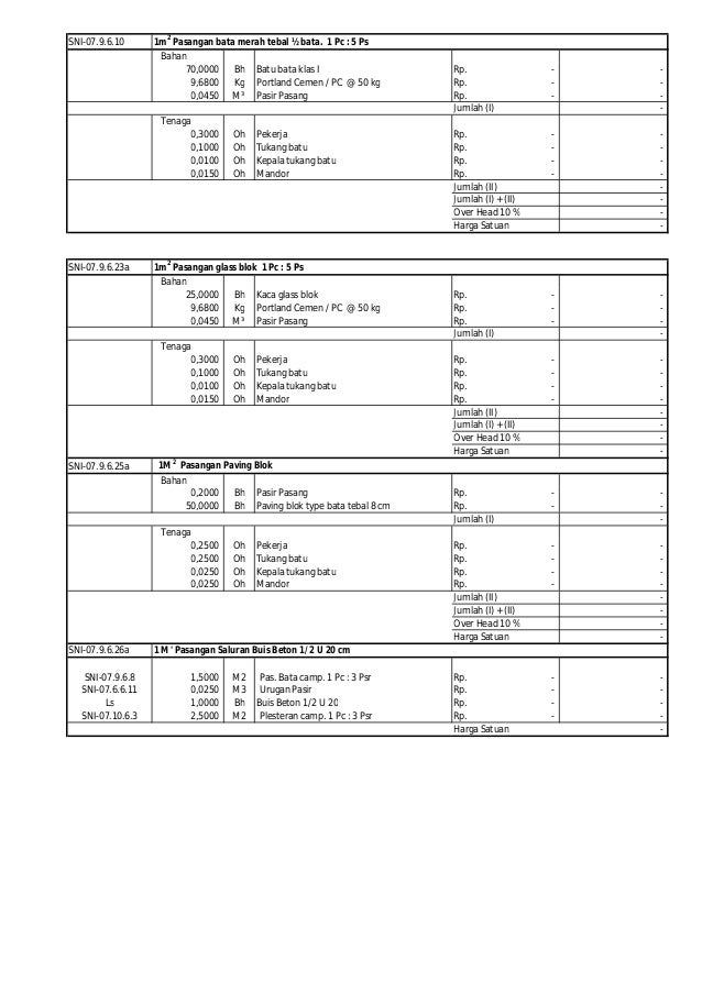 Analisa Harga Satuan Pekerjaan SNI analisa harga satuanSNI